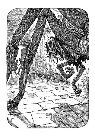 Our characters are not always walking directly toward a camera. That would make a terrible movie. Look at the scene of Bonifer Squoon as a spider (“Spidifer”) in The Warden and the Wolf King. No faces are visible. The boys are narrowly escaping out a bright door so we see only their silhouettes. Squoon himself is scarier as a mysterious, spidery hulk, without focus. There are implications of his appearance, but no clear view to be seen. Give the reader details they need, and give them room to imagine as well. Thats not always the plan or what is needed, but its a great step in learning how to tell a story through illustrations.